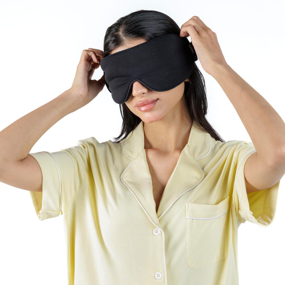 ابدئي رحلتك نحو نوم عميق مع غطاء العين الناعم المصنوع من 95% فيسكوز من البامبو الطبيعي و5% سباندكس، المصمم ليحجب الإضاءة بلطف ويمنحك أجواء هادئة تساعد على الاسترخاء. خفيف على الوجه، ناعم على البشرة. قطعة صغيرة لكن تأثيرها كبير على جودة نومك.